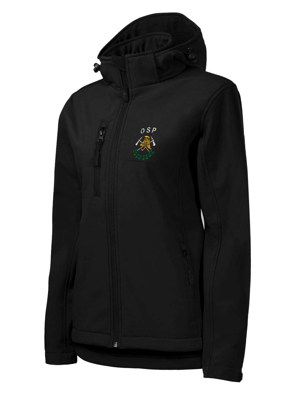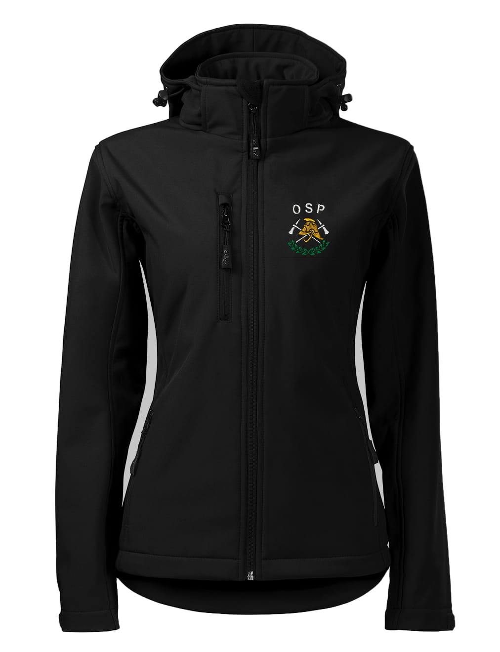 Softshell kurtka czarna z haftowanym logo OSP damska