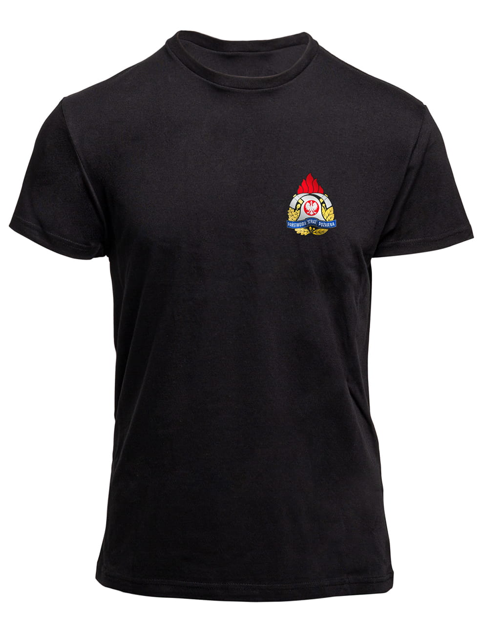 T-Shirt męski z krótkim rękawem z drukowanym logo PSP na lewej piersi oraz napisem STRAŻ na plecach (2 opcje do wyboru)