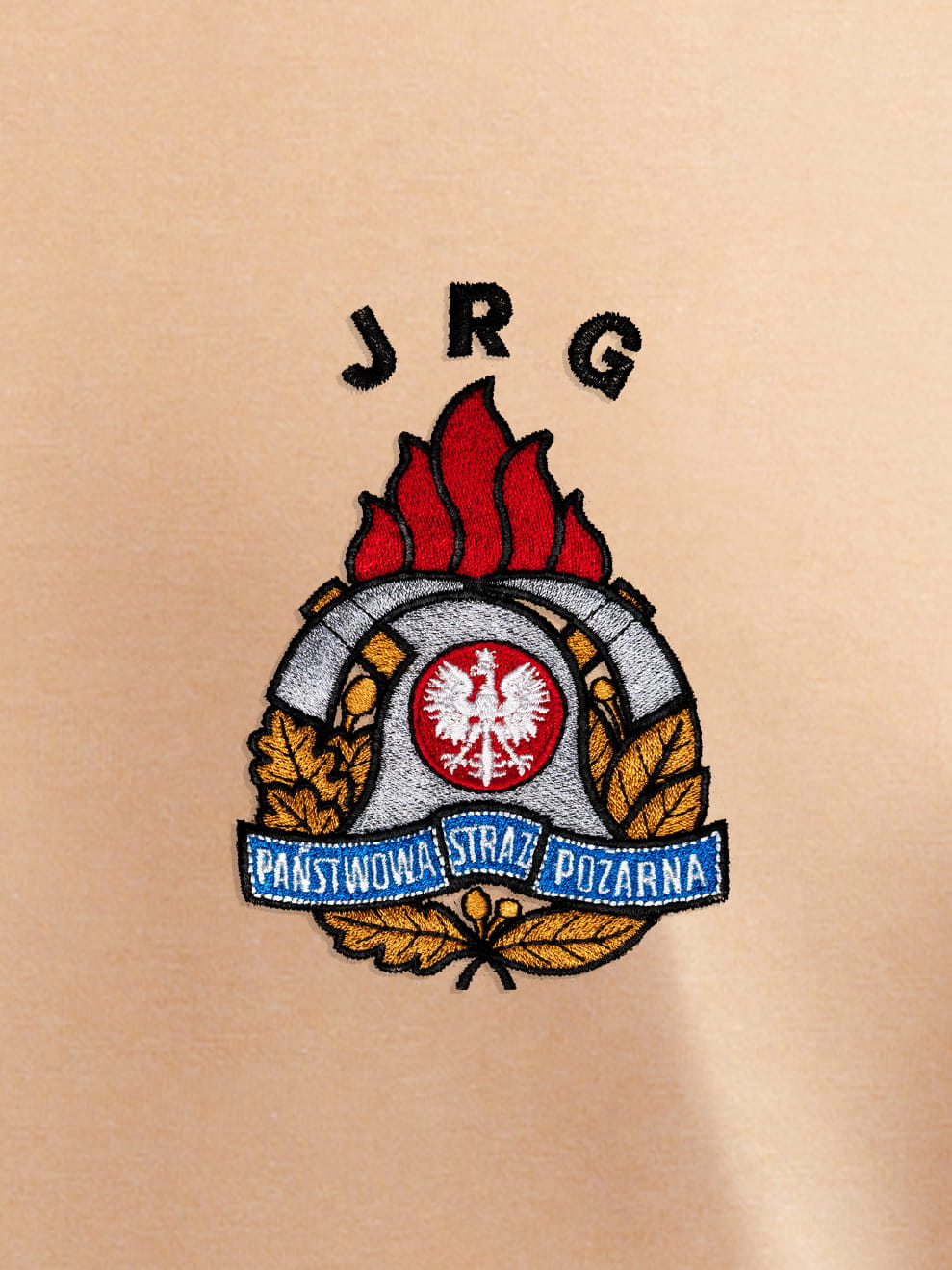 T-shirt piaskowy z haftowanym logo PSP JRG męski